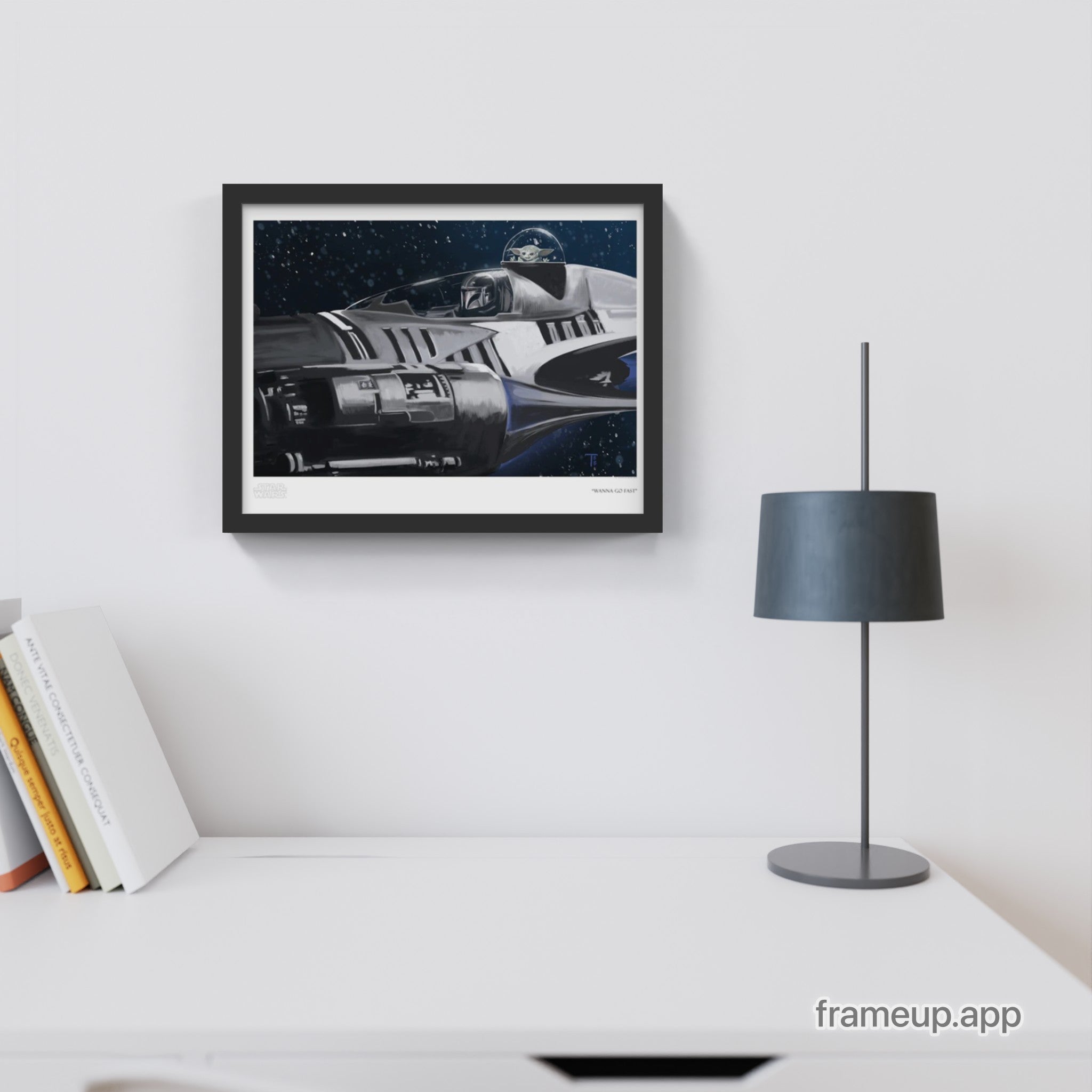 Officially licensed fine art Giclee designed by Tricia Buchanan-Benson, inspired by Star Wars: The Mandalorian.