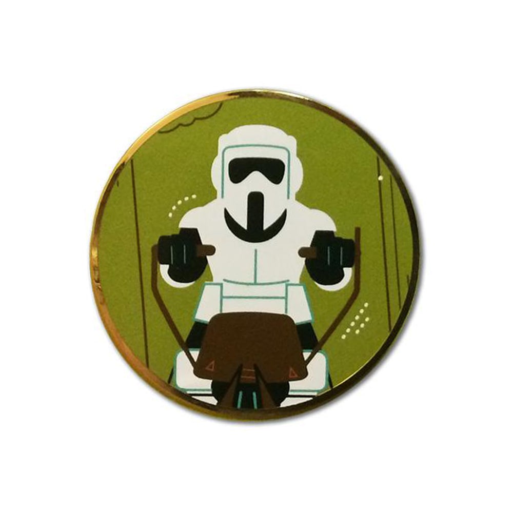 Gold color metal collectible pin on backer card with image of the artwork the pin was based on.