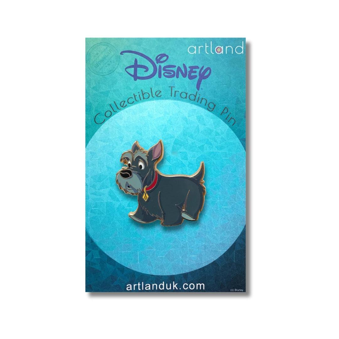 Officially licensed fine art Pins designed by Artland, inspired by Lady and the Tramp. This pin is a fantastic addition to the Lady and the Tramp cut out collection and features the bone hoarding, fierce little Scottie, Jock.