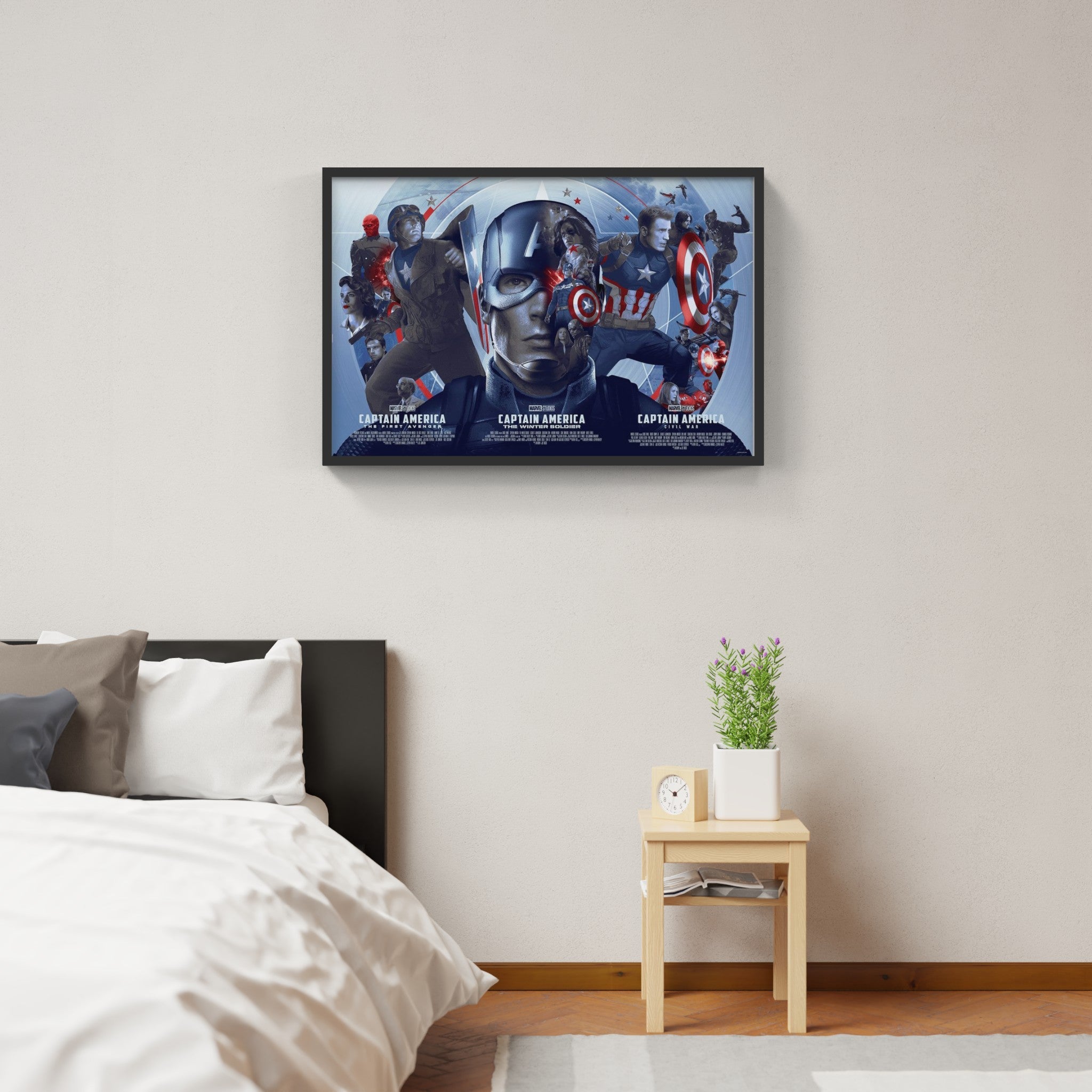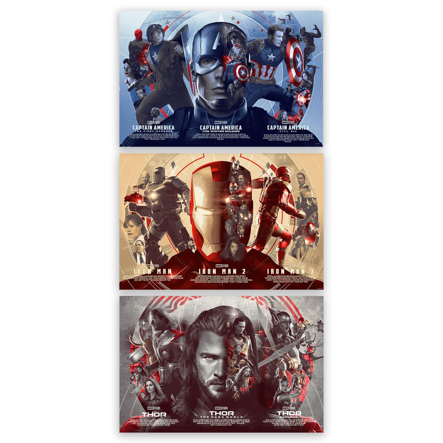Officially licensed fine art Lithograph designed by Devin Schoeffler, inspired by Iron Man, Thor and Captain America Trilogy.