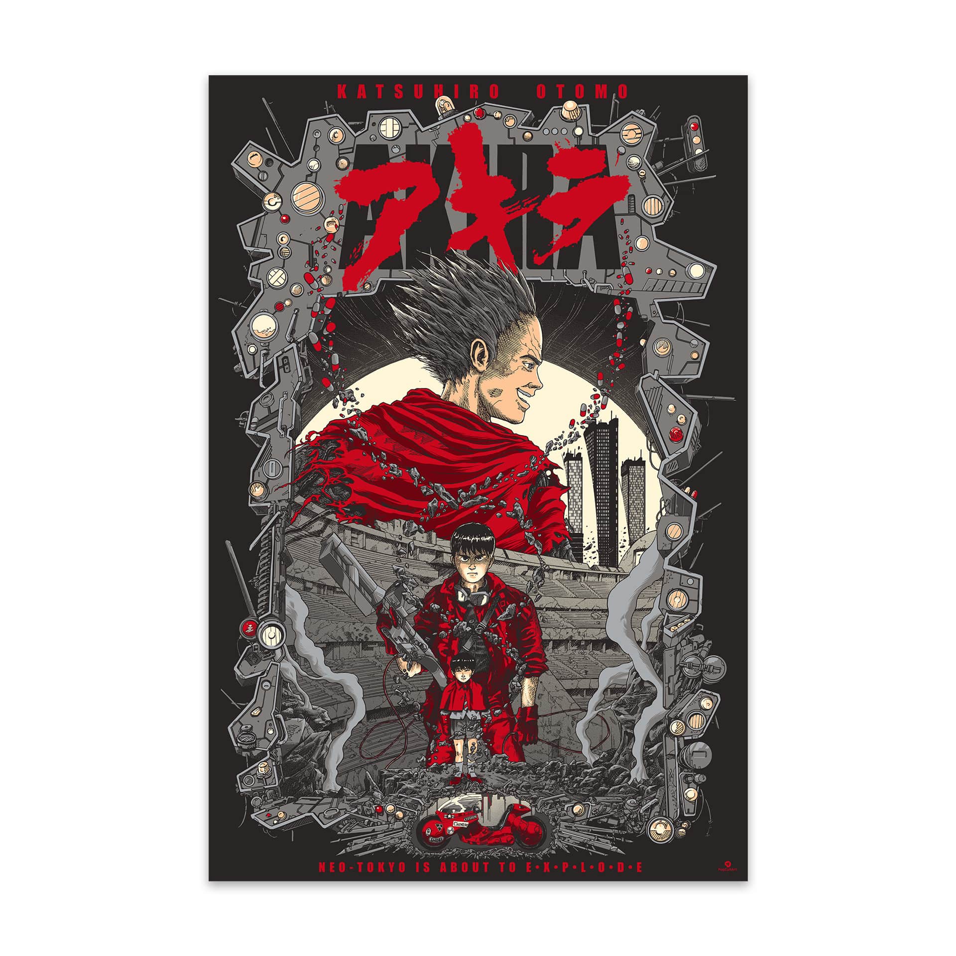 Fine art screen print designed by Brussels-based artist Ammo, inspired by the 1988 classic anime, Akira.