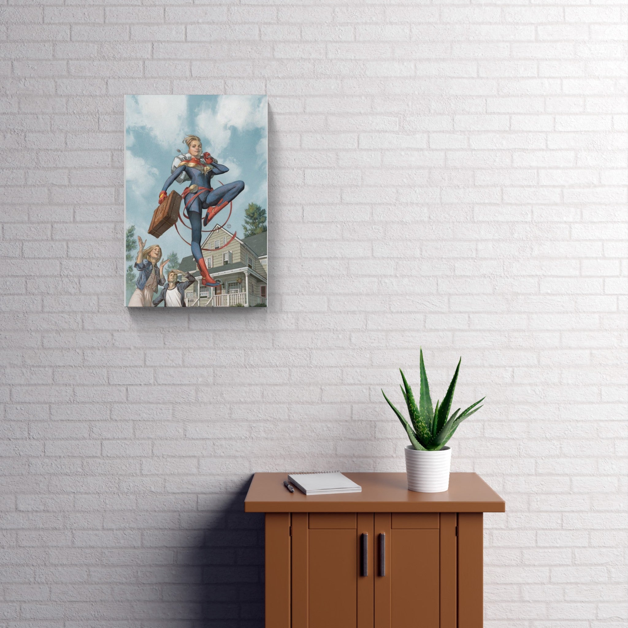 Officially licensed fine art Canvas (Rolled) designed by Julian Totino, inspired by Captain Marvel.