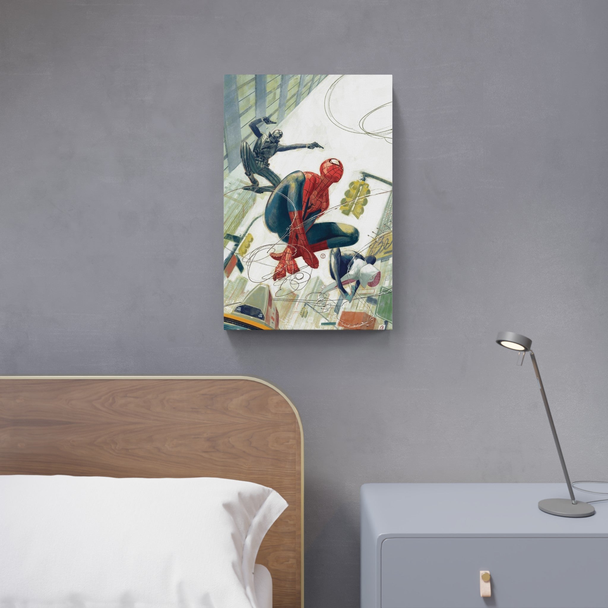 Officially licensed fine art Canvas (Rolled) designed by Julian Totino, inspired by Spider-Man.TM & ©2022 ACME Archives Ltd. and Marvel. All Rights Reserved.